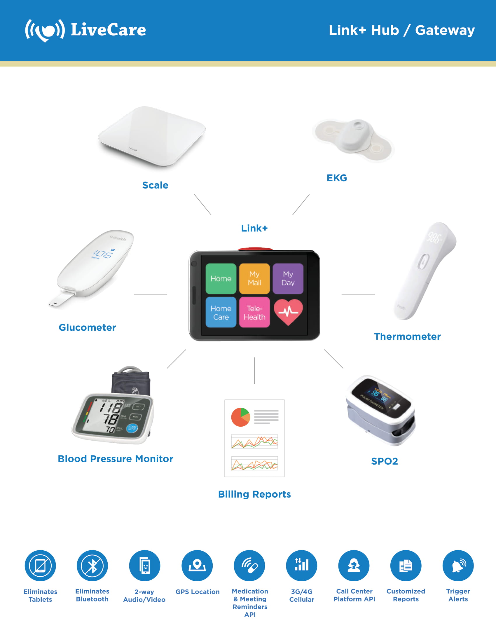 Learn moreLiveCare has brought the Remote Patient Monitoring Industry into the 21st century by creating the Link+, a 4G Smart Home Gateway that integrates all the Medical Devices in the patient’s home by using a touch-free Syncing Process. The Link+ helps to overcome the significant RPM deployment challenges, monitor chronic care patients and increase better patient outcomes.